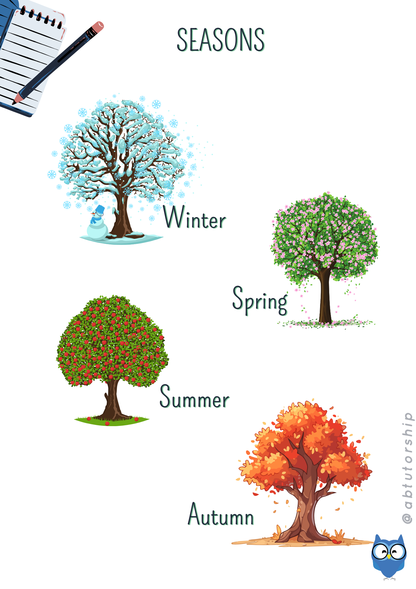 • Month & Season Vocabulary: Introduces all 12 months and 4 seasons with clear visuals.